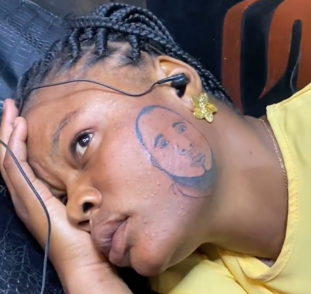 A viral video circulating on social media has sparked mixed reactions after a woman tattooed her boyfriend’s face on her cheek.